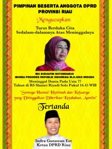 Pimpinan dan Anggota DPRD Riau Turut Berduka Atas Meninggalnya Ibunda Presiden RI