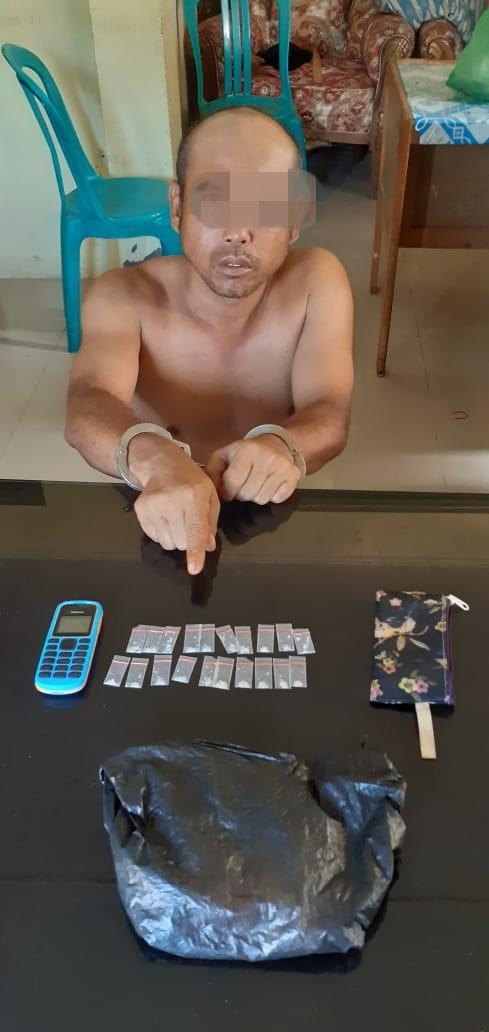 Bersama pelaku turut diamankan sejumlah barang bukti berupa 20 paket kecil narkotika jenis shabu terbungkus plastik bening, sebuah dompet kecil warna hitam, 1 unit Handphone Nokia N1280, 1 buah kanting plastik warna hitam dan 1 kantong plastik warna bening.