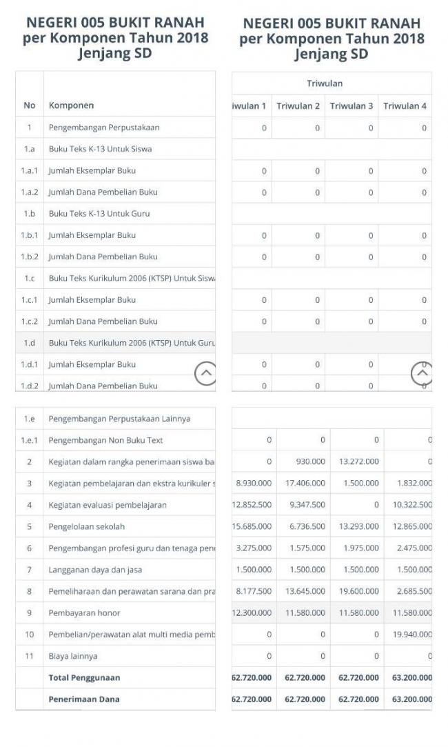 Kampar - Dalam Laporan pertanggungjawaban penggunaan anggaran Dana Bantuan Operasional Sekolah (BOS) SDN 05 Bukit Ranah, Kecamatan Kampa, Kabupaten Kampar, Provinsi Riau, ke dinas pendidikan Kabupaten Kampar, tahun 2018 tidak ada dalam laporan untuk perbelanjaan Buku K13 dan Buku Perpustakaan, dimana dalam ketentuan juknis, ada pembelian Buku 20 % dari semua anggaran, setiap tahun Pada tahap II.