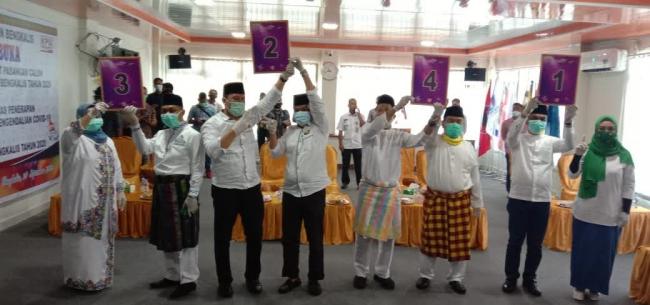 Ketua KPU Bengkalis Fadhillah Al Mausuly melanjutkan, hasil pencabutan nomor urut tadi sudah kita ketahui bersama dan hasil nya Kaderismanto-Iyeth Bustami (KDI) Nomor urut 1, H. Abi Bahrun-Herman (AMAN) nomor urut 2 disusul Kasmarni-Bagus Santoso (KBS) urut ke 3 dan H. Indra Gunawan Eet-Samsu Dalimunte (ESA) dengan nomor urut ke 4.