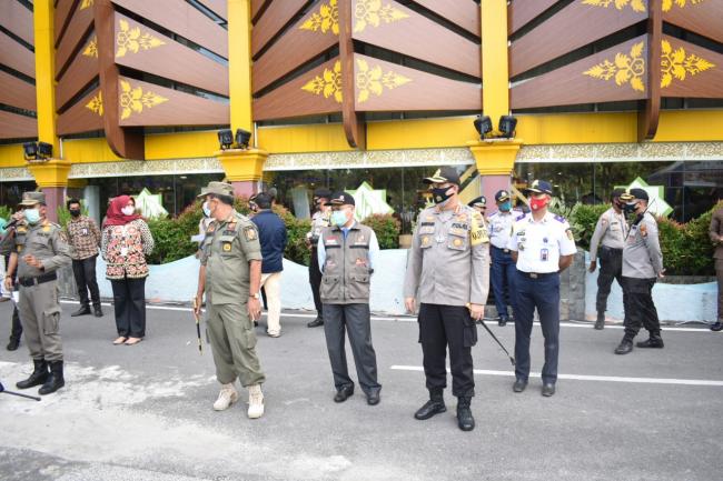 Apel gelar pasukan pembatasan sosial berskala mikro dipimpin langsung Asisten I Azwan didampingi Kapolresta Pekanbaru H.Nandang Mu'min Wijaya., S.I.K., M.H, turut hadir Dandim 0301 Kolonel inf Edy Budiman.S.I.P., M.I.P, Wakapolresta Pekanbaru Akbp Yusup Rahmanto, S.I.K.,M.H, Kasat Pol PP, Kadishub Kota Pekanbaru, Kepala BPBD Kota Pekanbaru, Kadispasar Kota Pekanbaru, Kadis Damkar Kota Pekanbaru, TNI, Polri gabungan pasukan apel dan lapisan masyarakat, dilaksanakan sesuai protokol kesehatan.