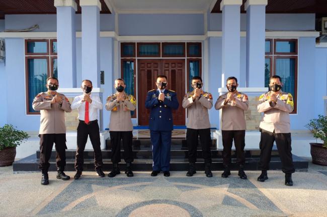 Rombongan berikutnya yang dipimpin oleh Dir Binmas Polda Kombes Pol Drs Kris Pramono memberikan Ucapan Selamat Ulang Tahun TNI ke 75 kepada Danlanal bertempat di Mess Lanal Dumai Jl Siberut No 6 Pekanbaru.
