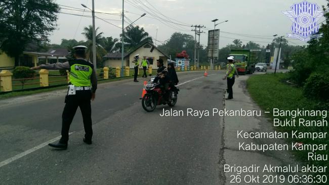Kapolres Kampar AKBP Asep Darmawan SH, SIK melalui Kasat Lantas AKP Fauzi SH, MH saat ditemui media menjelaskan, bahwa selain melakukan kegiatan Refresif (penindakan) petugas juga melakukan kegiatan Preventif berupa penyuluhan tentang himbauan tertib berlalulintas.