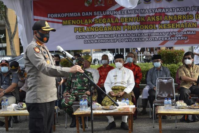 "Karena itu, saya mengajak seluruh kompenan masyarakat Kota Pekanbaru, untuk bersatu dan bergandeng tangan untuk menolak aksi anarkisme di kota yang kita cintai ini," ajak Kapolresta Pekanbaru.
