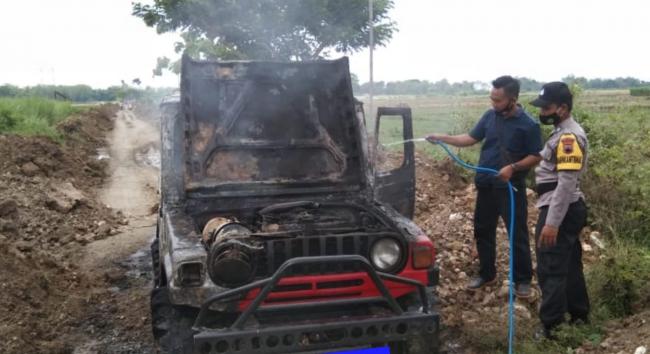 Di duga akibat Konsleting, mobil Taft terbakar. Polsek Kayen segera olah TKP