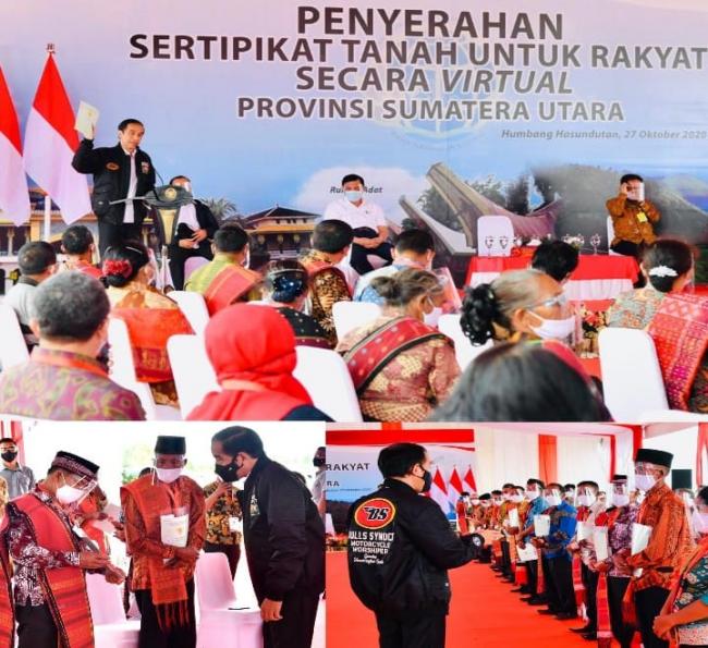 Membacabangsa.co.id - Bertempat di Stadion Simangaronsang, Kabupaten Humbang Hasundutan, pada Selasa, 27 Oktober 2020, Presiden Joko Widodo menyerahkan 22.007 sertifikat hak atas tanah untuk rakyat. Penyerahan sertifikat tersebut merupakan bagian dari kunjungan kerja Presiden ke Provinsi Sumatera Utara.