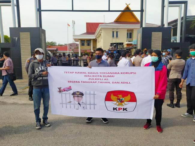 Koordinator umum aksi, Muhammad Zulfan Arif mengatakan, Terkait persoalan ini sebenarnya merefresh dan mengingatkan kita kembali bahwasanya saat ini Kota Dumai sedang dipimpin oleh seorang Tersangka tindak pidana korupsi, "ujarnya.