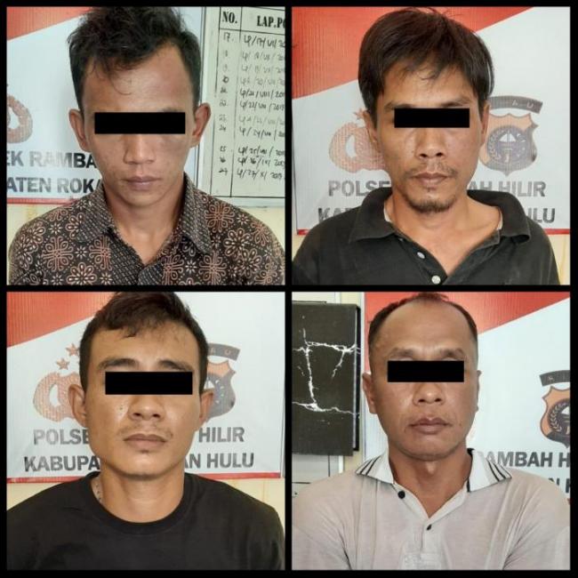 Rokan hulu:Membacabangsa.co.id-Anggota Reskrim Polsek Rambah hilir, Polres Rokan Hulu (Rohul),berhasil meringkus 4 komplotan di duga spesialis pencuri hewan ternak sapi,di Simpang Semangka,Desa Pasir Utama,Kecamatan Rambah Hilir,Kabupaten Rokan Hulu,Provinsi Riau, pada Senin (28/10/2019) , siang sekitar pukul 11.00 wib .