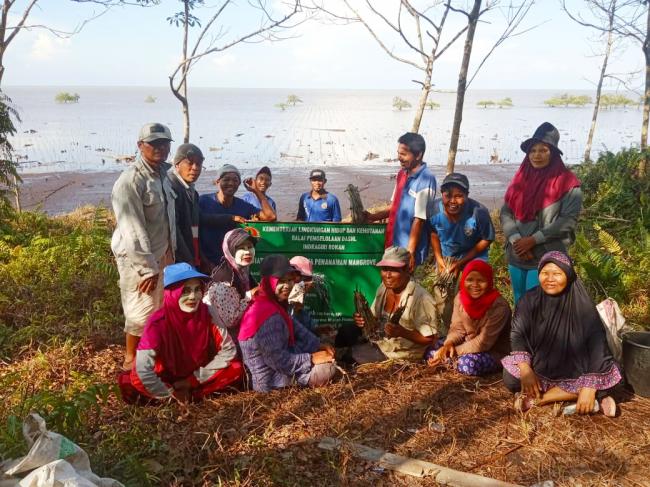 Bengkalis,membacabangsa.co.id - Tim Inpektorat Kementerian Lingkungan Hidup dan Kehutan RI, Pejabat dari BPDAS HL INROK dan Kepala KPH Bengkalis Pulau berserta empat staf nya langsung turun ke tiga lokasi Program Ekonomi Nasional Padat Karya Mangrove areal pantai desa Muntai barat, desa Muntai dan desa Pambang pesisir Kecamatan Bantan Kab. Bengkalis Riau. Rabu (18/11/20).