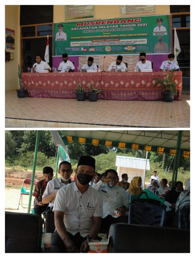 Camat Selayar, Muhammad saman,S,pd dalam kata sambutannya, berharap dengan musrenbang tahun 2021 ini , segala usulan yang menjadi prioritas bagi masyarakat kecamatan Selayar, yang terdiri dari empat desa melalui usulan musrenbang tinggkat desa, menjadi harapan terbesar dalam pembangunan, infrastruktur dan peningkatan ekonomi masyarakat yang pada tahun sebelumnya sudah di usulkan namun belum terealisasi.