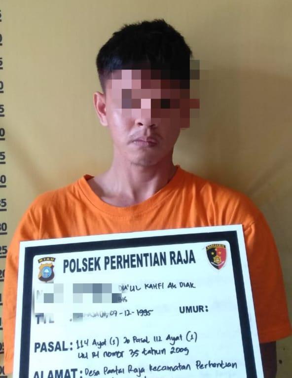 PERHENTIAN RAJA - Unit Reskrim Polsek Perhentian Raja tangkap seorang tersangka pengedar narkotika jenis shabu, di wilayah Desa Kampung Pinang Kecamatan Perhentian Raja pada Selasa siang (9/2/2021).