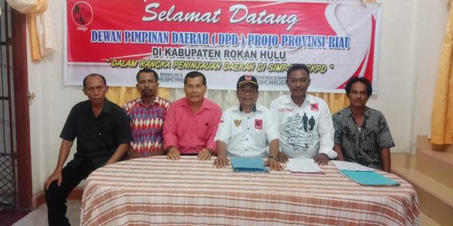 Kegiatan kunjungan kerja Rombongan DPD PROJO Riau yang dipimpin oleh Bendahara DPD, Tukino dalam rangka menyaksikan pembentukan penyusunan kepengurusan DPC PROJO Rokan Hulu.