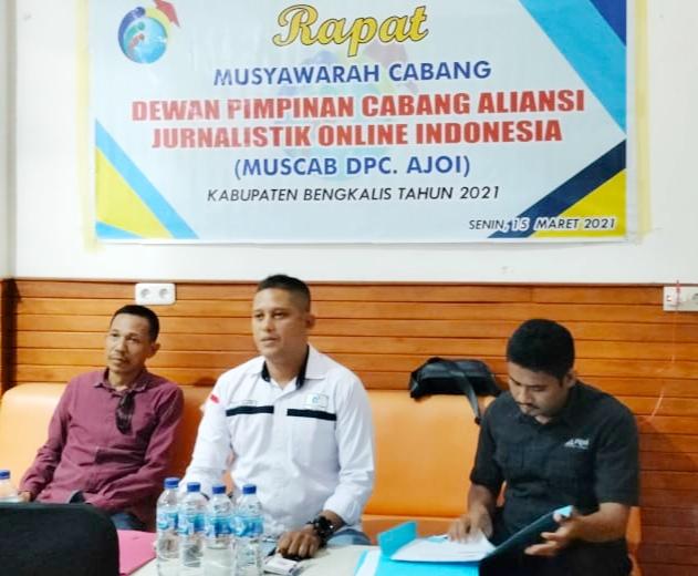 Bengkalis - Dewan Pimpinan Cabang Aliansi Jurnalis Online Indonesia (DPC AJOI) Kabupaten Bengkalis kini resmi dinakhodai Fadli setelah terpilih sebagai ketua dalam Musyawarah Cabang (Muscab) yang diselenggarakan di Ruang Rapat Jong Distro, Jl. Diponegoro Bengkalis, Senin, 15 Maret 2021.