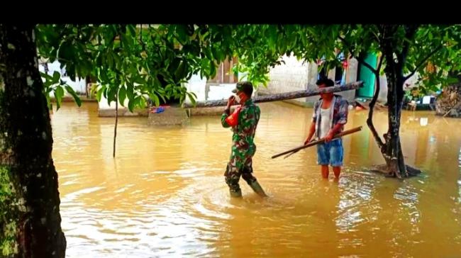 "Selain puluhan rumah warga, ada juga fasilitas umum yang terdampak banjir, seperti SD Negeri 003 dan satu unit posyandu,” jelas Kopda Jantri.