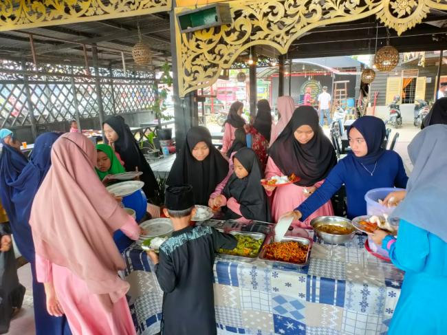 Mereka tampak senang mengikuti makan siang di Kafe TSJ yang diadakan oleh Satreskrim Polres Kampar ini, 200 porsi makan siang disiapkan oleh panitia untuk dinikmati para peserta Program Jumat Barokah Satreskrim Polres Kampar ini.
