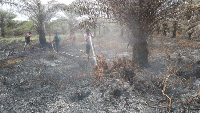 Saat patroli ini mereka melihat kepulan asap dari arah perkebunan sawit warga dan langsung mendatanginya, setiba dilokasi ditemukan kebakaran lahan pada areal perkebunan sawit dengan luas sekitar 2 hektar. Waktu itu beberapa titik masih menyala sedangkan sebagian lainnya telah padam namun masih mengeluarkan asap yang cukup tebal.