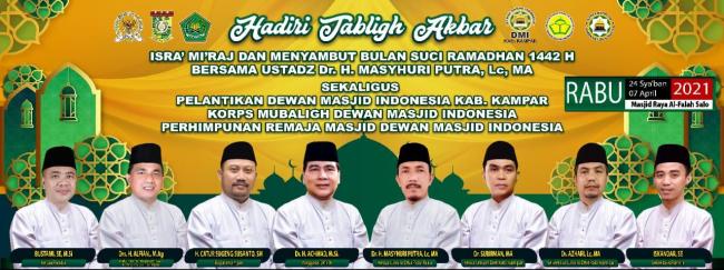 KAMPAR - Pengurus Pimpinan Daerah Dewan Masjid Indonesia (PD-DMI) Kabupaten Kampar masa bakti 2021-2026 akan dilantik Ketua Umum DMI Provinsi Riau, Dr.H.Masyhuri Putra, Lc,MA.