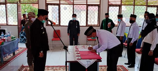 Usai dengan sambutanya, Camat melanjutkan dengan melantik Anggota BPD baru dari Desa Rantau Panjang dan Desa Batang Kumu.