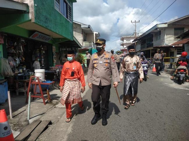 Kapolres Lingga Pantau Penerapan Prokes dan Bagikan Masker Kepada Masyarakat di Pasar Dabo Singkep