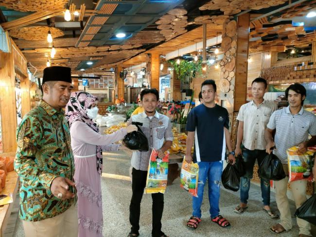 Pekanbaru - Dipenghujung Bulan Ramadhan ini, Ketum Santri Tani Nahdatul Ulama (SANTAN NU) T. Rusli Ahmad, SE kembali berbagi Al Quran serta paket sembako kepada masyarakat di Agro Wisata RA Kopi Aren Jalan Siak II Palas Pekanbaru, Minggu, (9/5/21).