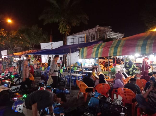 Hal yang sama juga dilakukan para petugas patroli ini pada setiap tempat yang disinggahi, selanjutnya Tim Patroli berhenti di Jalan Ahmad Yani tepat dibelakang Stadion T. Tambusai sebagai lokasi pusat jajan yang ramai dikunjungi masyarakat. Ditempat ini petugas menertibkan masyarakat yang tidak menjaga jarak dan meminta mereka untuk tetap mengenakan masker.