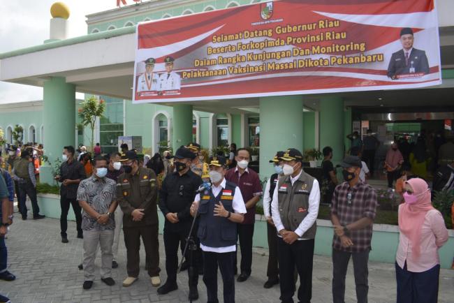 Pada kegiatan itu juga, Walikota Pekanbaru Dr. H. Firdaus ST,MT menyampaikan ucapan terimakasih kepada Gubernur Riau yang telah memberikan bantuan Vaksinasi untuk masyarakat Kota Pekanbaru.