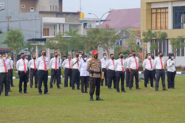 PEKANBARU - Wakapolda Riau, Brigjen Pol Tabana Bangun Msi memberikan penekanan kepada seluruh personil Polda Riau, pada saat Apel Pagi di Lapangan Utama Mapolda Riau jalan Pattimura no. 13 Kota Pekanbaru pada Senin pagi (24/05/2021).