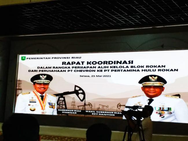 Sebelumnya Gubernur Riau Drs. Syamsuar, M. Si menyatakan rapat ini dalam rangka persiapan alih Kelola Blok Rokan dari perusahaan PT. Chevron ke PT Pertamina Hulu Rokan, tentu banyak hal yang harus kita persiapkan sehingga dalam pengelolaan nanti tidak ada kendala yang akan dihadapi " Kata Syamsuar yang didampingi Forkopimda Riau, pihak pertamina, Pihak PT Chevron, Pemerintah Provinsi Riau dan Pemerintah Kabupaten Kampar.