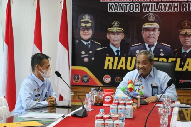 Guna membahas teknis bangunan lapas sesuai standar yang telah ditetapkan, ekspose pradesain blok hunian Lapas Bengkalis digelar di ruang rapat Kakanwil, Selasa (15/6/2021).