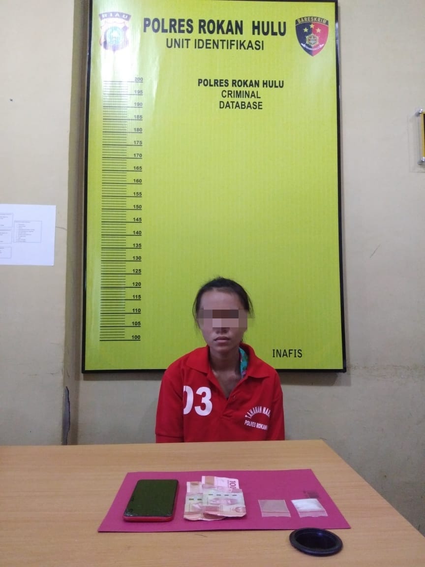 yang diduga sebagai pengedar Narkoba.Tersangka WA, umur 19 tahun, Jenis kelamin wanita, warga Ngaso RT/RW 002/002 Desa Ngaso Kec. Ujg Batu Kab. Rokan Hulu Kamis, tgl 17 Juni 2021 sekira pukul 00.30 WIB.