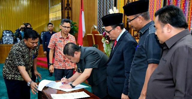 Sebagaimana diatur dalam Peraturan Pemerintah nomor 12 tahun 2018 pasal 16 ayat 6 dan sesuai dengan ketentuan pasal 16 ayat 8 peraturan tata tertip DPRD kabupaten bengkalis nomor 2 tahun 2019 yang berbunyi "Kebijakan umum APBD dan prioritas plafon anggaran sementara yang telah dapat persetujuan bersama ditanda tangani oleh Bupati dan Pimpinan DPRD dalam rapat paripurna".