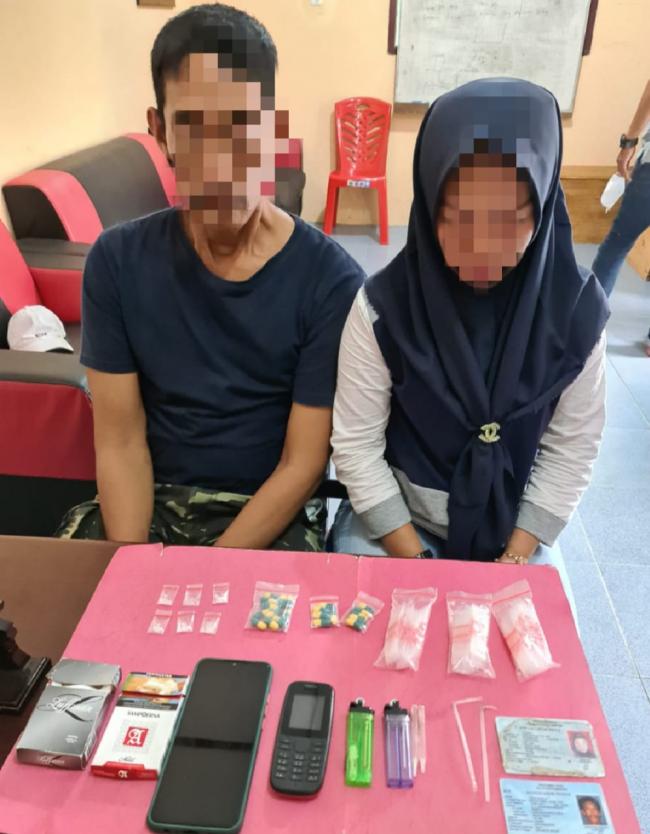 Polsek Siak Hulu Tangkap Pasangan Suami Istri Miliki 6 Paket Shabu dan 21 Kapsul Ekstasi
