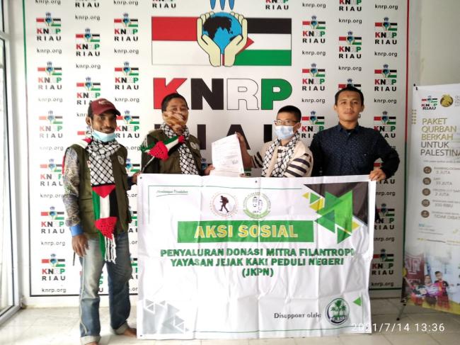 Pekanbaru - Yayasan Jejak Kaki Peduli Negeri (JKPN) menyalurkan donasi publik untuk Palestina. Dana tersebut diberikan untuk membantu berbagai kebutuhan rakyat di wilayah Timur Tengah tersebut, yang saat ini tengah terdampak konflik.
