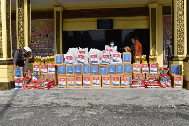 Kapolres Kampar AKBP Mohammad Kholid SIK saat dikonfirmasi terkait kegiatan menyampaikan, bahwa hari ini Polres Kampar mendistribusikan 600 paket sembako untuk masyarakat kurang mampu yang membutuhkan.