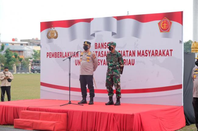 PEKANBARU- Kapolda Riau, Irjen Pol Agung Setya Imam Efendi dan Danrem 031 Wirabima, Brigjen TNI M. Syech Ismed melepas keberangkatan Bantuan Sosial sebanyak 503 paket, yang disalurkan kepada masyarakat melalui Posko PPKM pada Jumat sore (06/07/2021).