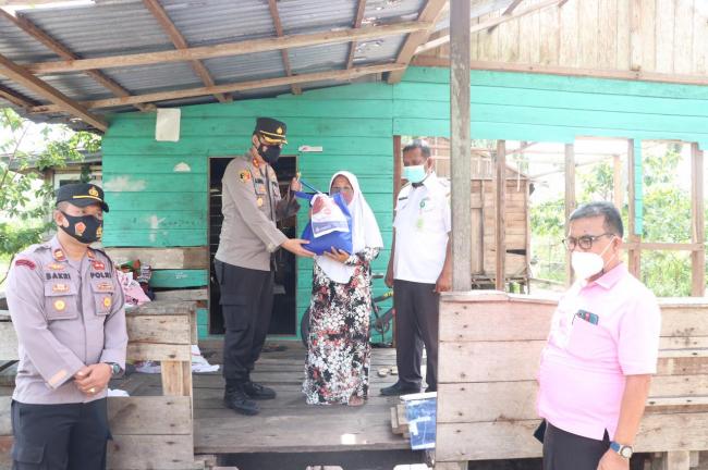 Polres Lingga Berikan Bansos Kepada Warga Kurang mampu di Desa Kuala Raya