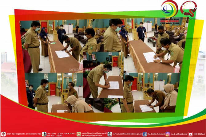 Pekanbaru , Setelah dilantik Jum`at lalu, pejabat struktural baru RSUD Arifin Achmad Provinsi Riau melakukan serah terima jabatan di Ruang Serbaguna RSUD Arifin Achmad Provinsi Riau (Senin, 27/07/2021).