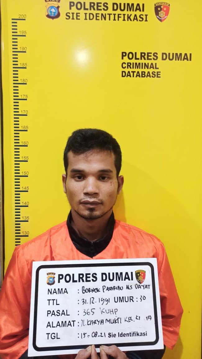Dengan dipimpin langsung oleh Kanit Tipidum Sat Reskrim Polres Dumai Ipda Andri Saputra, S.E, M.M, Tim Garuda Polres Dumai berhasil membekuk seorang pelaku BP (29) warga Kabupaten Rokan Hilir yang merupakan bagian dari komplotan bersenjata tersebut pada Minggu (15/08/2021) lalu disebuah rumah kontrakan di Jalan Lingga 3 Kelurahan N Dua Aek Nabara Kecamatan Bilah Hulu Kabupaten Labuhan Batu - Provinsi Sumatera Utara.