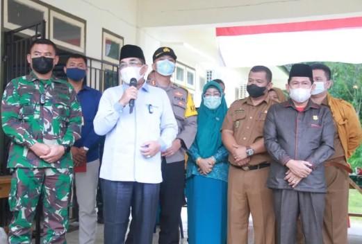 Bupati Drs H Anwar Sadat, M.Ag meninjau pelaksanaan Vaksinasi Covid-19 dalam rangka Serbuan Vaksin TNI Kodim 0419/Tanjab di Lapangan Kantor Desa Pematang Lumut Kecamatan Betara, senin (13/09/2021). Kegiatan ini merupakan upaya dalam rangka percepatan vaksinasi dengan jumlah sasaran 3000 peserta. Kegiatan ini juga dihadiri oleh Dandim 0419/Tanjab, Kapolres Tanjab Barat, Ketua DPRD Tanjab Barat, Camat betara, Kapolsek betara, dan Babinsa betara.