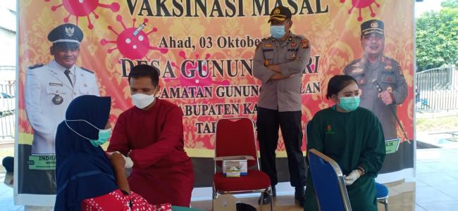 Pelaksanaan Vaksinasi diadakan di Pendopo Desa Gunung Sari yang diikuti 290 warga, sesuai Vial vaksin dari Polres Kampar yang dialokasikan untuk kegiatan ini, semua warga yang divaksin untuk hari itu masih tahap pertama atau dosis satu.