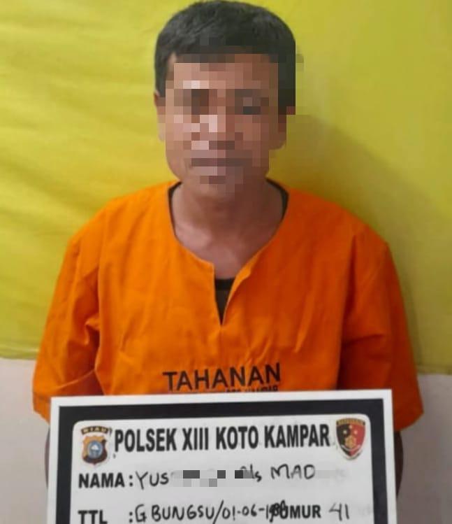 Pelakunya YU alias MD (41) warga Desa Tanjung Kec. Koto Kampar Hulu, ditangkap pada Selasa sore (19/10/2021) di Desa Tanjung Kecamatan Koto Kampar Hulu. Petugas juga mengamankan barang bukti berupa besi anker ukuran 10 mm sebanyak 20 batang.