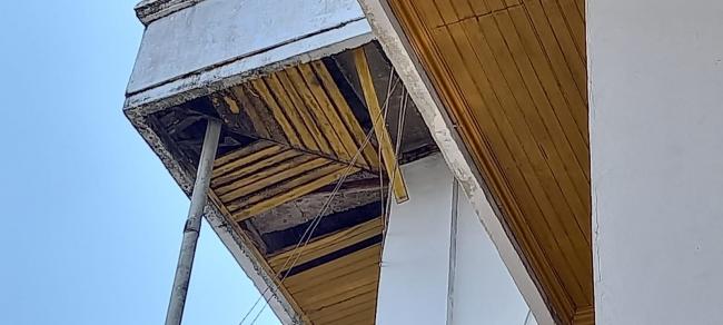 JAMBI membacabangsa.co.id.- Gedung DPRD Kabupaten Muaro Jambi seperti tak terawat. Bagaimana tidak, bagian plafon atas disisi kanan bagian teras lobi utama gedung tersebut sudah mengalami kelapukan.