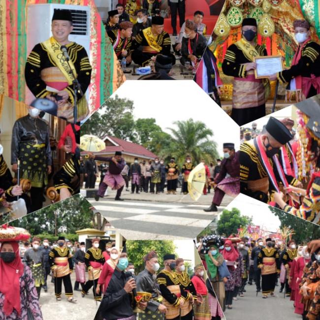 MEMBACABANGSA.CO.ID PEKANBARU - Saat melakukan kunjungan kerja di Kuansing, Kapolda Riau Irjen Pol Agung Setya Imam Efendi,SH, SIK, M.Si menerima gelar kehormatan Adat “Datuk Bandaro Alam” dari Pemangku Adat Kabupaten Kuantan Singingi pada Kamis (18/11/2021) bertempat di Pendopo Rumah Dinas Bupati Kuantan Singingi di Taluk Kuantan Riau.