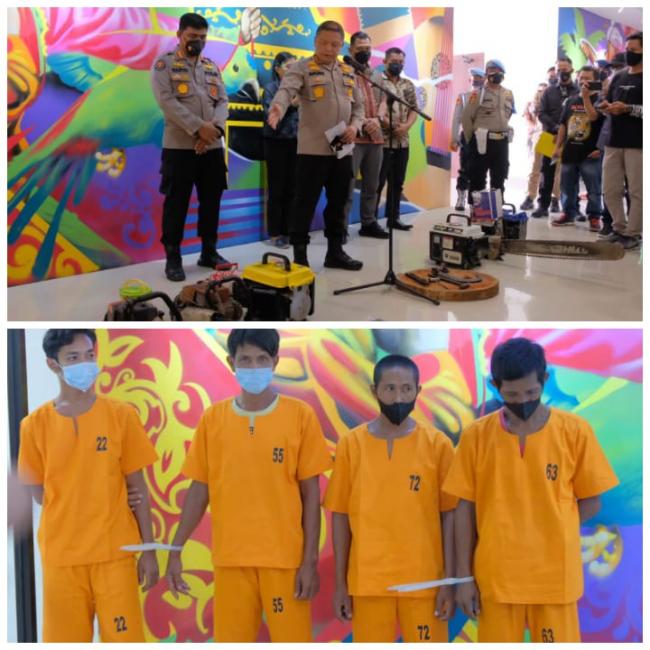 “Dari lokasi Cagar Alam Biosfer Siak Giam Kecil, diamankan 4 orang pelaku yang berinisial MA, NS, H, dan HM. Mereka berperan sebagai cukong hingga pekerja,” terang Irjen Agung, didampingi Dirkrimsus Polda Riau, Kombes Ferry Setiawan, dan Kabid Humas Polda Riau, Kombes Sunarto, Jumat (19/11/2021).