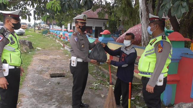 Sembari membagi-bagikan sembako, para Polantas dari Polres Kampar ini juga memberikan himbauan kepada masyarakat agar disiplin menerapkan protokol kesehatan dan juga himbauan untuk tertib berlalulintas kepada pengguna jalan.