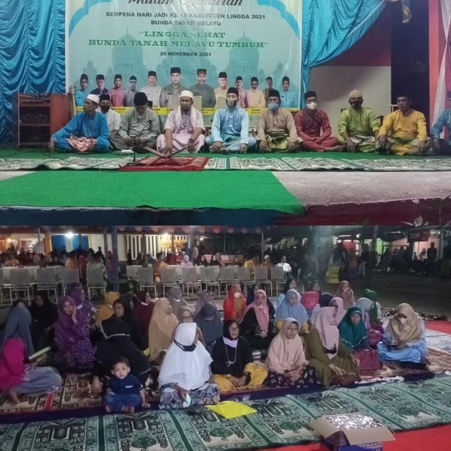 LINGGA (Kepri) membacabangsa.co.id - Camat Selayar H. Abdul Kamar adakan acara syukuran dan tausiyah agama sempena hari jadi Ke-18 Kabupaten Lingga bertempat dilapangan merdeka desa penuba kecamatan Selayar kabupaten lingga, Minggu, 20/11/2021. malam