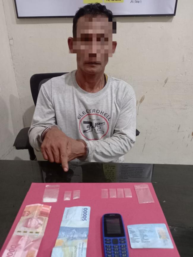 Dari pelaku didapati barang bukti 3 paket narkotika jenis shabu terbungkus plastik klip bening seberat 1,16 Gram, 1 Unit Hp Merk Nokia warna Biru, 5 lembar plastik klip dan uang tunai sebesar Rp 150 ribu dari hasil penjualan shabu.