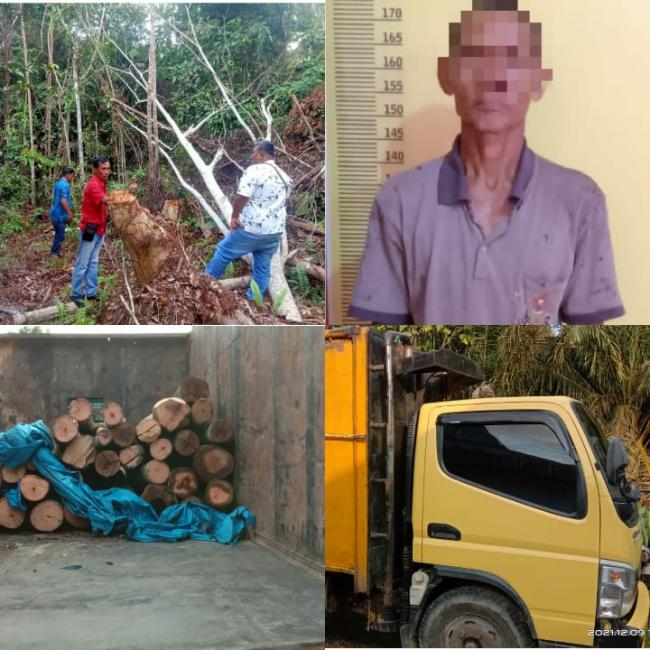 MEMBACABANGSA.CO.ID - KAMPAR - Unit Reskrim Polsek Kampar Kiri amankan seorang pelaku Illegal Logging atau pembalakan liar, di kawasan hutan konservasi area PT. PSPI wilayah Desa Kebun Durian Kecamatan Gunung Sahilan. Pelakunya KA warga Desa Pongkai Kecamatan Kampar Kiri Tengah, ditangkap pada Kamis siang (09/12/2021).