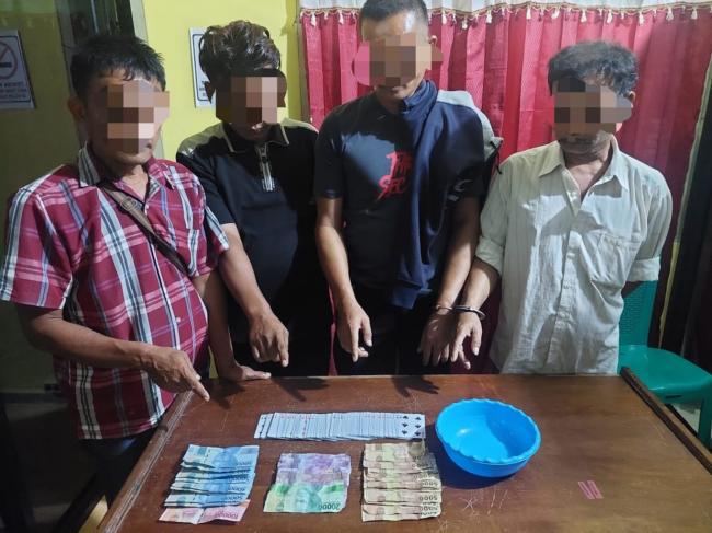 Unit Reskrim Polsek Kampar Kiri Amankan 4 Pelaku Judi Song di Desa Gunung Sari