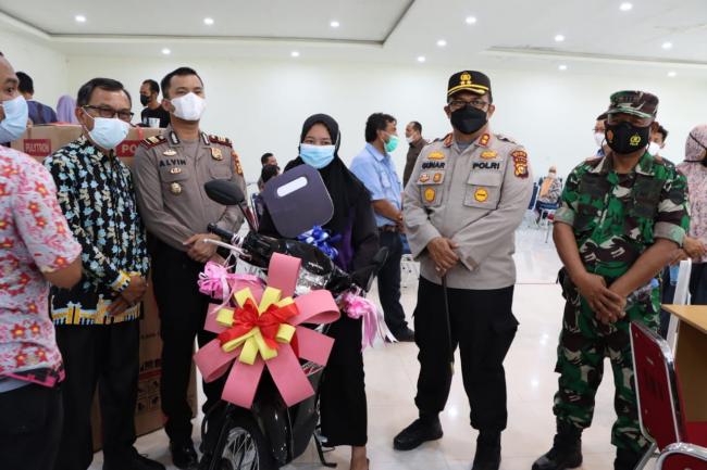 Kapolres Siak Serahkan Satu Unit Sepeda Motor Hadiah Undian Pekan Vaksinasi Gelombang Pertama